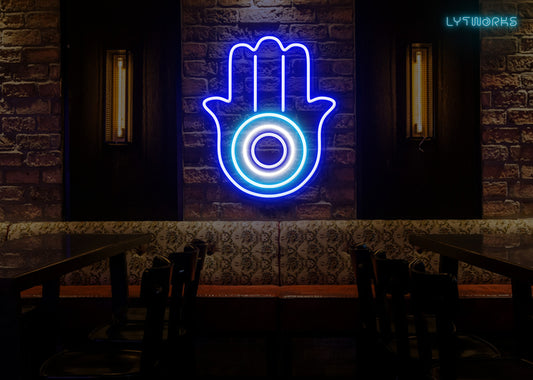 Neon Hamsa Hand and Evil Eye
